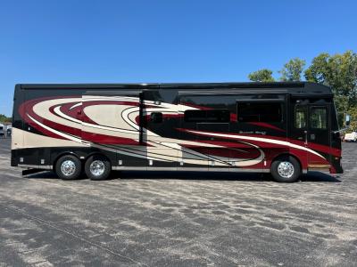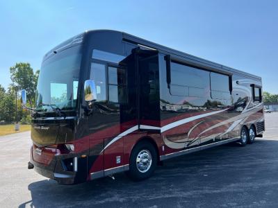 Sleeps 5 Slides 3 Length 43 ft 9 in Ext Width 8 ft 6 in Ext Height 13 ft 1 in Int Height 6 ft 11 in Interior Color Alora, Bayshore, Catalina, Stratton Exterior Color Champagne, Salsa, Seaspray, Steely Hitch Weight 15000 lbs GVWR 51000 lbs Dry Weight 40000 lbs Cargo Capacity 11000 lbs Fresh Water Capacity 105 gals Grey Water Capacity 75 gals Black Water Capacity 55 gals Furnace BTU 50000 btu Generator 10.0 Kw Onan Fuel Type Diesel Engine Cummins 8.9L Chassis Freightliner Tag Axle Horsepower 450 hp Fuel Capacity 150 gals Wheelbase 288 in Available Beds King Torque 1250 ft-lb Refrigerator Type Whirlpool Refrigerator Size 19.7 cu ft Convection Cooking Yes Cooktop Burners 3 Shower Size 50" x 34" Number of Awnings 1 Axle Weight Front 19000 lbs Axle Weight Rear 20000 lbs Axle Weight Tag 12000 lbs LP Tank Capacity 22 gals Water Heater Type Demand AC BTU 45000 btu TV Info LR Samsung LED TV, BR Samsung LED TV Awning Info Girard® G2000 power with wind sensor, remote control & LED lights Washer/Dryer Available Yes Gross Combined Weight 66000 lbs Shower Type Shower w/Seat Electrical Service 50 amp Similar Motor Home Class A - Diesel Floorplans