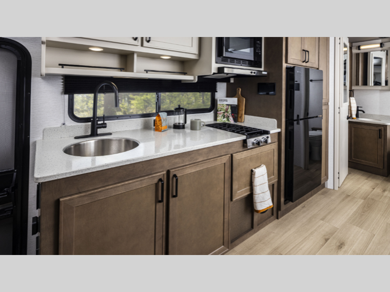 Sleeps 4 Slides 1 Length 25 ft 6 in Ext Width 7 ft 9 in Ext Height 11 ft 4 in Int Height 7 ft Interior Color Oak Bluffs, Seabrooke Exterior Color Cobalt Drift, Crimson Current, Driftwood Tide, Nimbus Stream, Obsidian Wake, Atlas LR, Mojave, Polaris, Tundra Fresh Water Capacity 34 gals Grey Water Capacity 29 gals Black Water Capacity 29 gals Furnace BTU 18000 btu Generator 3.6kW Onan LP Fuel Type Diesel Engine 4-Cylinder Dual Turbo Diesel Chassis Mercedes-Benz Sprinter 4500 Cab Horsepower 208 hp Fuel Capacity 24.5 gals Wheelbase 170 in Number Of Bunks 1 Available Beds RV Queen Torque 332 ft-lb Refrigerator Type 12V Refrigerator Size 8 cu ft Convection Cooking Yes Cooktop Burners 2 Shower Size 36" x 24" Axle Weight Front 4410 lbs Axle Weight Rear 7720 lbs LP Tank Capacity 20.3 gals. Water Heater Type GE Tankless AC BTU 15000 btu TV Info Smart LED TV; LR, Ext. Awning Info Powered Girard GG Lateral Arm w/LED Lights and Slide Toppers Gross Combined Weight 15250 lbs Shower Type Standard Solar Wattage 200 watts Similar Floorplans