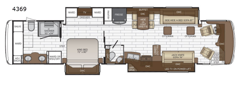 - Freightliner® Tag Axle 450Hp on 40’-43’ Floorplans
