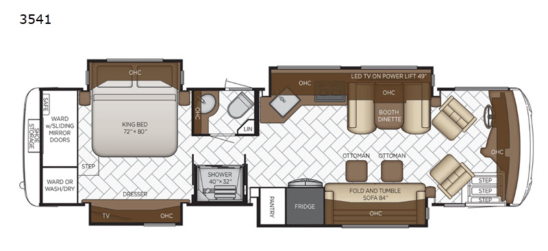 | Gross Combined Weight | 48600 lbs | Shower Type | Shower w/Seat |