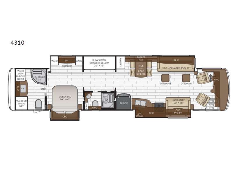 - 50” Televator with Fireplace in Place of Front Overhead TV on 4311